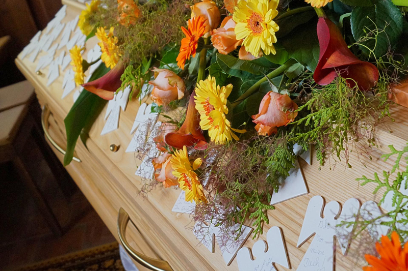 Wir überreichen während der Beratung einen kleinen zierlichen Holzengel, schlicht – und doch voller Möglichkeiten. Jeder Betroffene darf den Engel mit seinen Worten, Gedanken und Verzierungen bemalen. Es ist ein Moment der Achtsamkeit, der Raum für persönliche Erinnerungen eröffnet. Der Gestaltung sind keine Grenzen gesetzt. Dies gilt für Kinder und Erwachsene Angehörige.